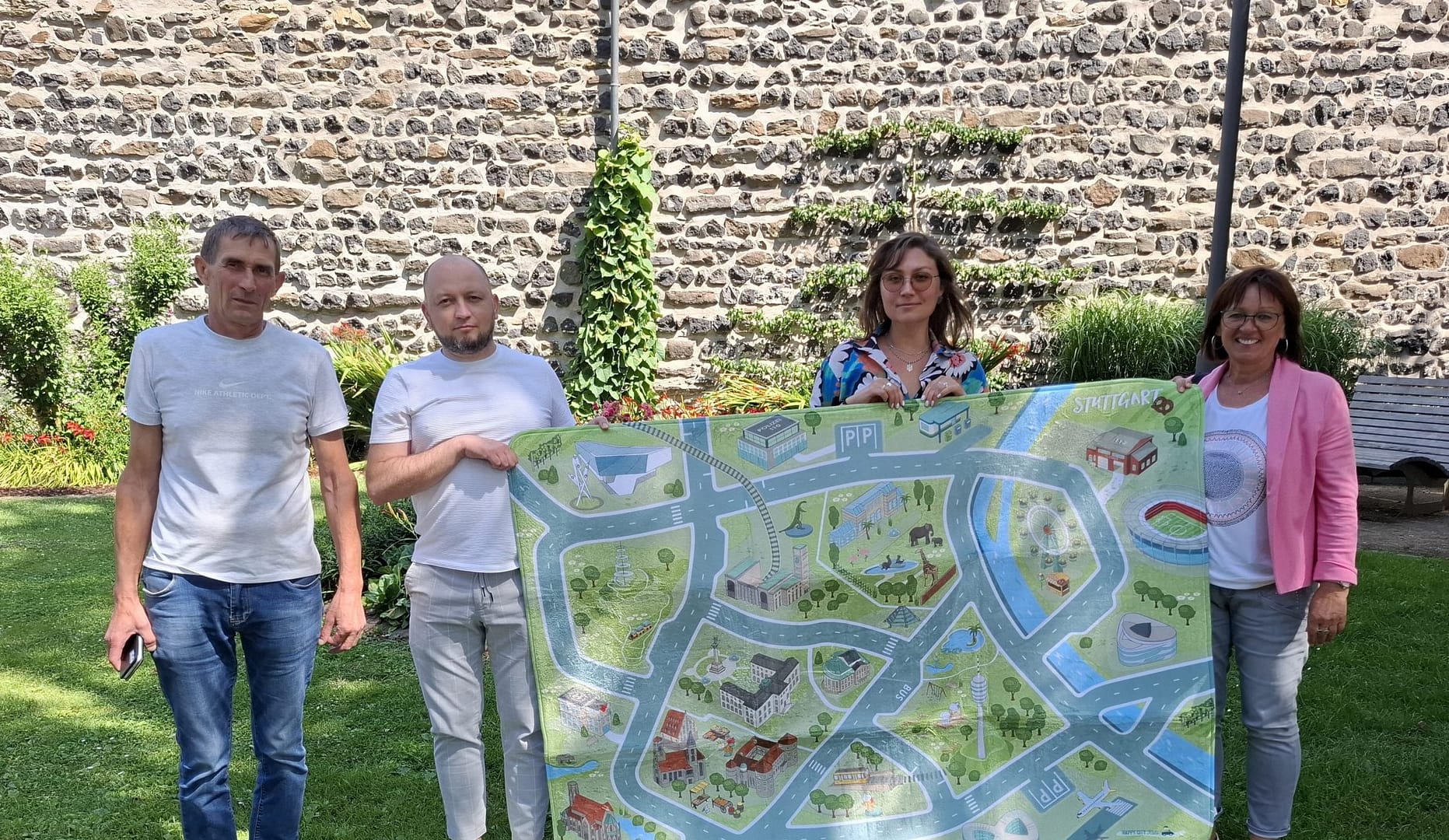Über die Spielteppiche freuten sich der stellvertretende Bürgermeister von Trostyanets Maksym Synyavin, Svytlana Popovych (Mitarbeiterin des dortigen Stadtrates) sowie der Fahrer Mykola Savchenko. Sie dankten der Deutsch-Ukrainischen Gesellschaft Montabaur und den beiden Firmen für diese tolle Spende. „Die Spielteppiche seien vor allem für die dortige Kindertagesstätte vorgesehen“, so der stellvertretende Bürgermeister Synyavin.